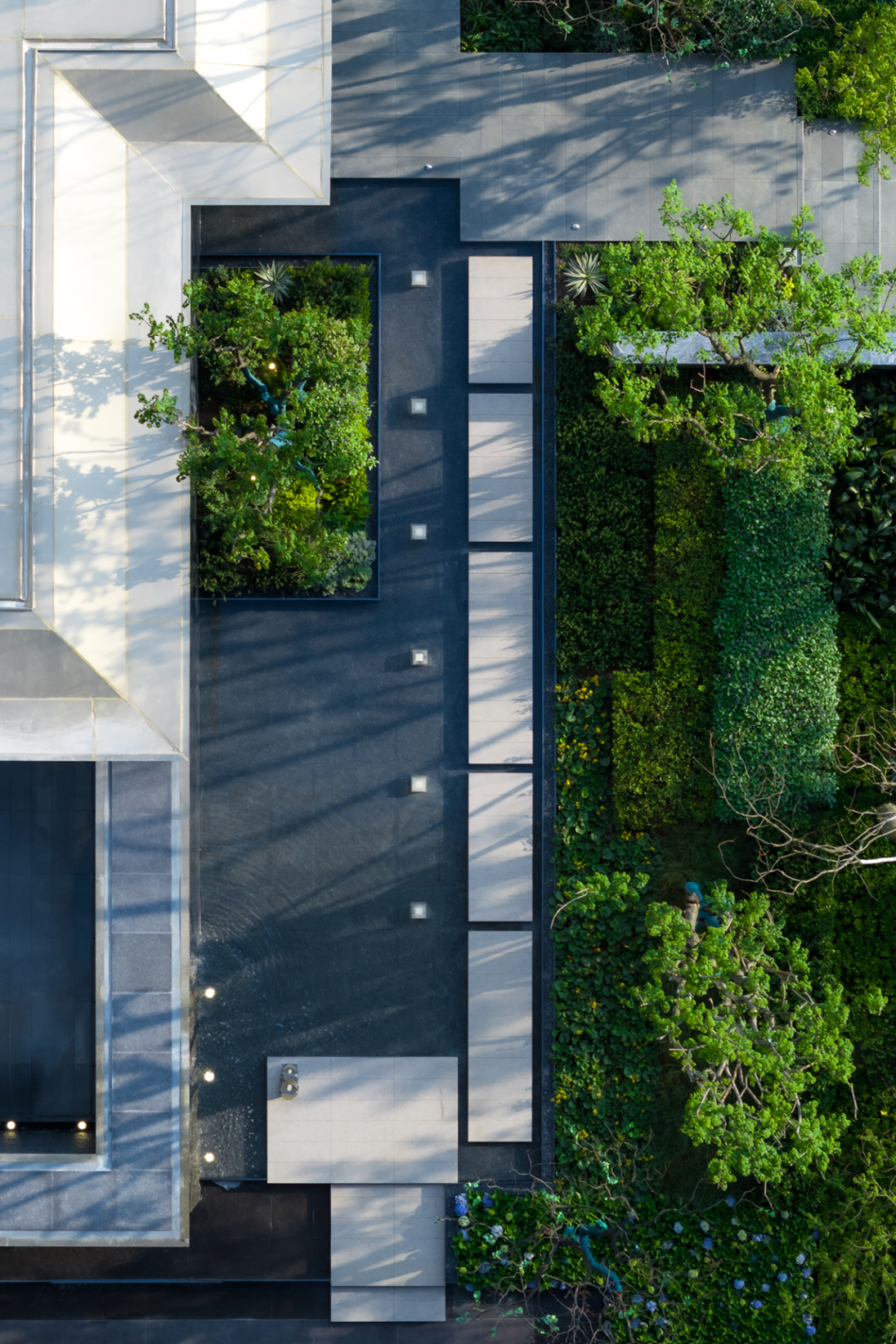 再利用穿插、相接多种形态构成眼前这种简约克制的美感度,这背后邀请的团队是来自新加坡的园林景观设计。