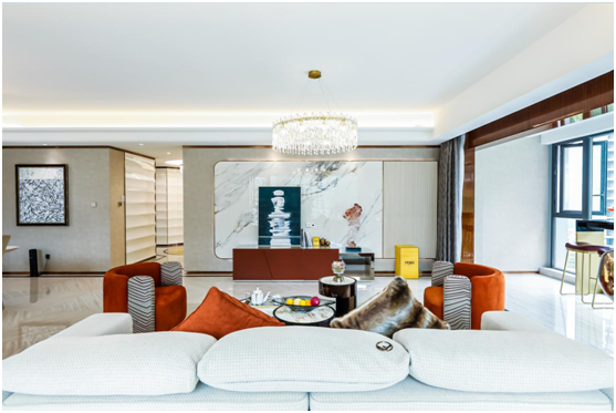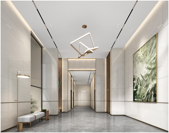双入户精装大堂采用五星级酒店的大厅标准,高品质建筑材料、艺术天花吊顶、品位卓绝的细节装饰,融合现代生活方式与传统礼制的同时,兑现五星级酒店般的品质享受和居住梦想。