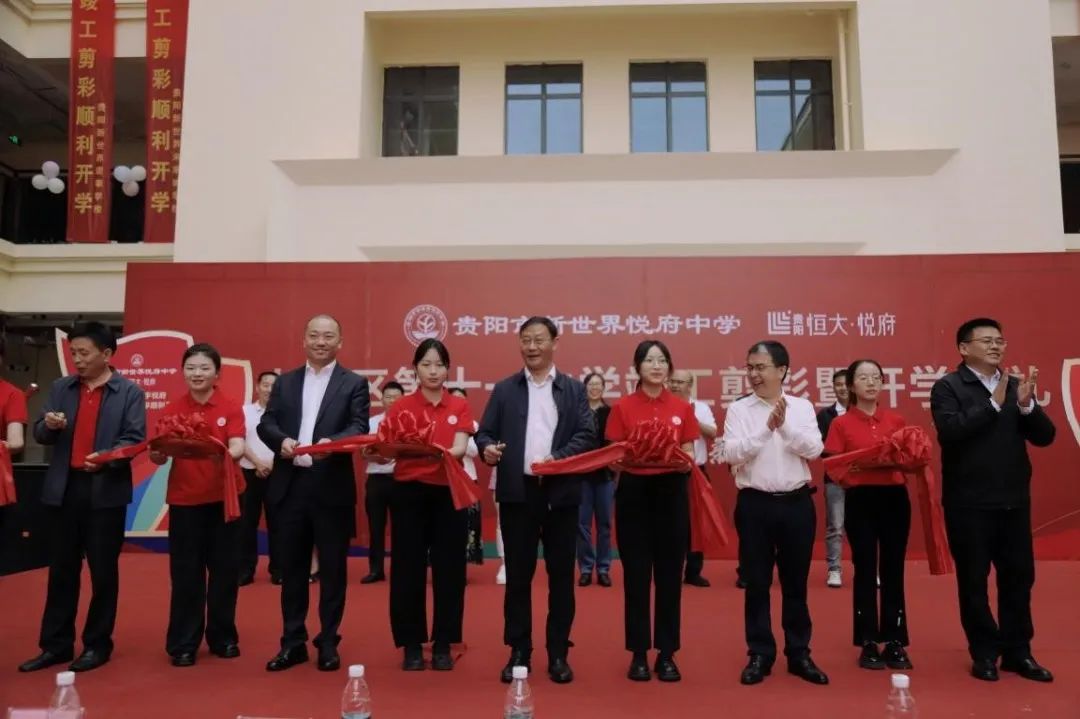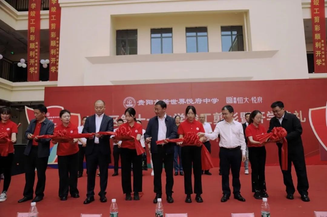 典礼的最后,各方嘉宾领导共同上台进行剪彩仪式。至此,一座朝气蓬勃的贵阳市新世界悦府中学跃然白云,开启了它的筑梦新征程。
