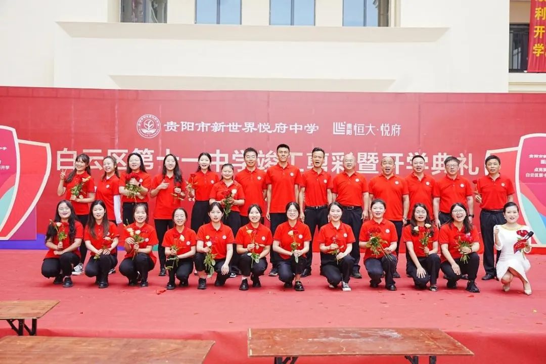 白云区区委副书记、区人民政府区长唐樾、区委常委李泽君、区人民政府副区长赵雪、区人民政府办公室主任陈明云,贵阳一中党委书记陈章义,白云区教育局局长李宇,白云区教育局副局长范轩祥,贵阳市新世界学校执行校长余红,贵阳市新世界学校领导代表夏黎华、罗其强,白云区保交楼专班舒平等各级领导嘉宾,恒大集团贵州公司董事长赵腾飞、恒大集团贵州公司项目总经理杨小乙及贵阳市新世界悦府中学教师、家长代表、学生共同参加本次活动,一同见证了这个激动人心的历史时刻,这是灿然一新的开始,也是鹰击长空的起点。
