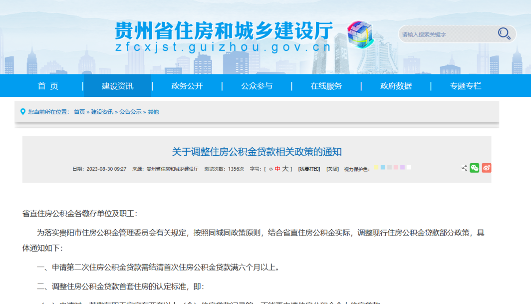 8月30日,贵州省住房和城乡建设厅网站发布关于调整住房公积金贷款相关政策的通知,支持公积金“又提又贷”。