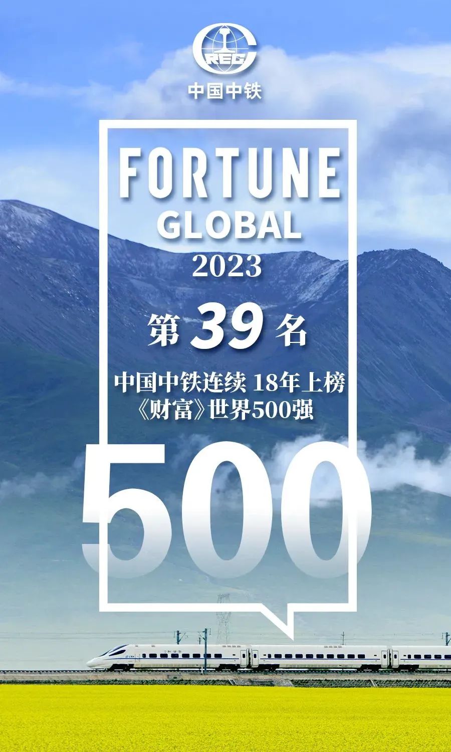 8月2日,财富中文网发布了2023年《财富》世界500强排行榜。中国中铁位列榜单第39位,连续18年上榜。