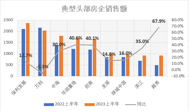 根据统计局公布的数据,今年上半年,全行业和百强房企的销售总额,都和去年疫情期间基本持平,并没有出现疫情之后的V型反弹。但是,头部房企的销售额提升,却非常明显。
