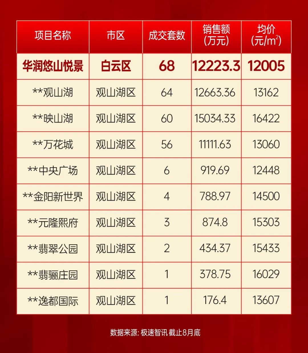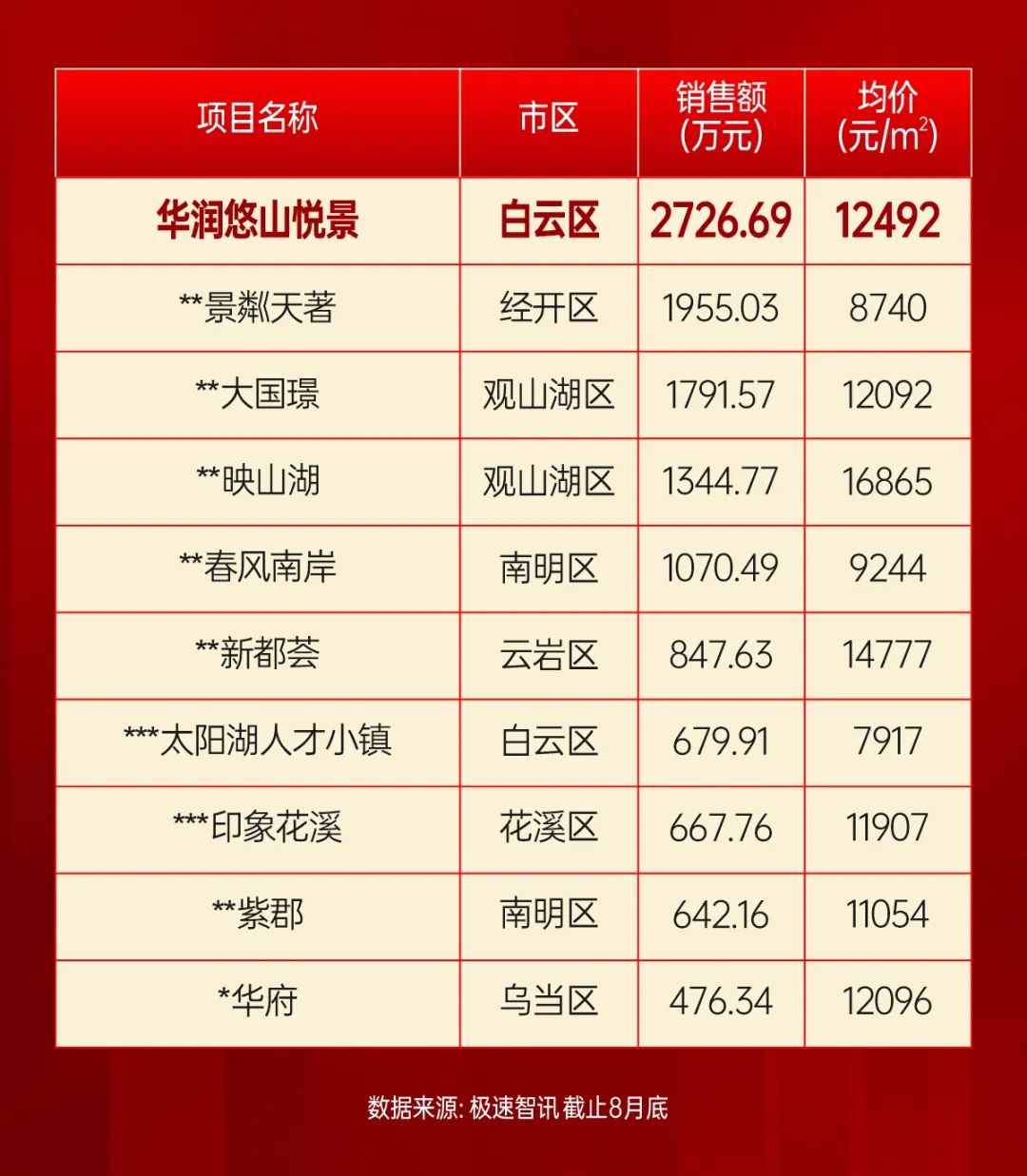 (1-8月贵阳市观白区域均价1.2万+洋房排行榜)
