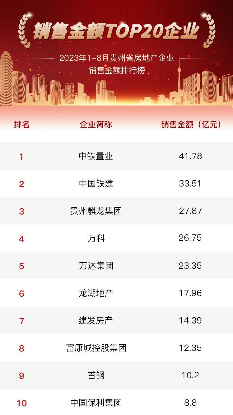 近日,贵州省房地产协会公布2023年1-8月贵州省房企销售金额榜,中铁置业以销售金额41.78亿元继续位居排行榜第一名。中铁阅山湖和中铁·阅花溪分别以13.13亿元和8.13亿元的成绩分列1-8月单个项目销售榜第三名和第六名。中铁置业成为前十中唯一一个荣获两个项目上榜的开发商。9月首周,中铁置业仍旧成绩亮眼,再续增势。