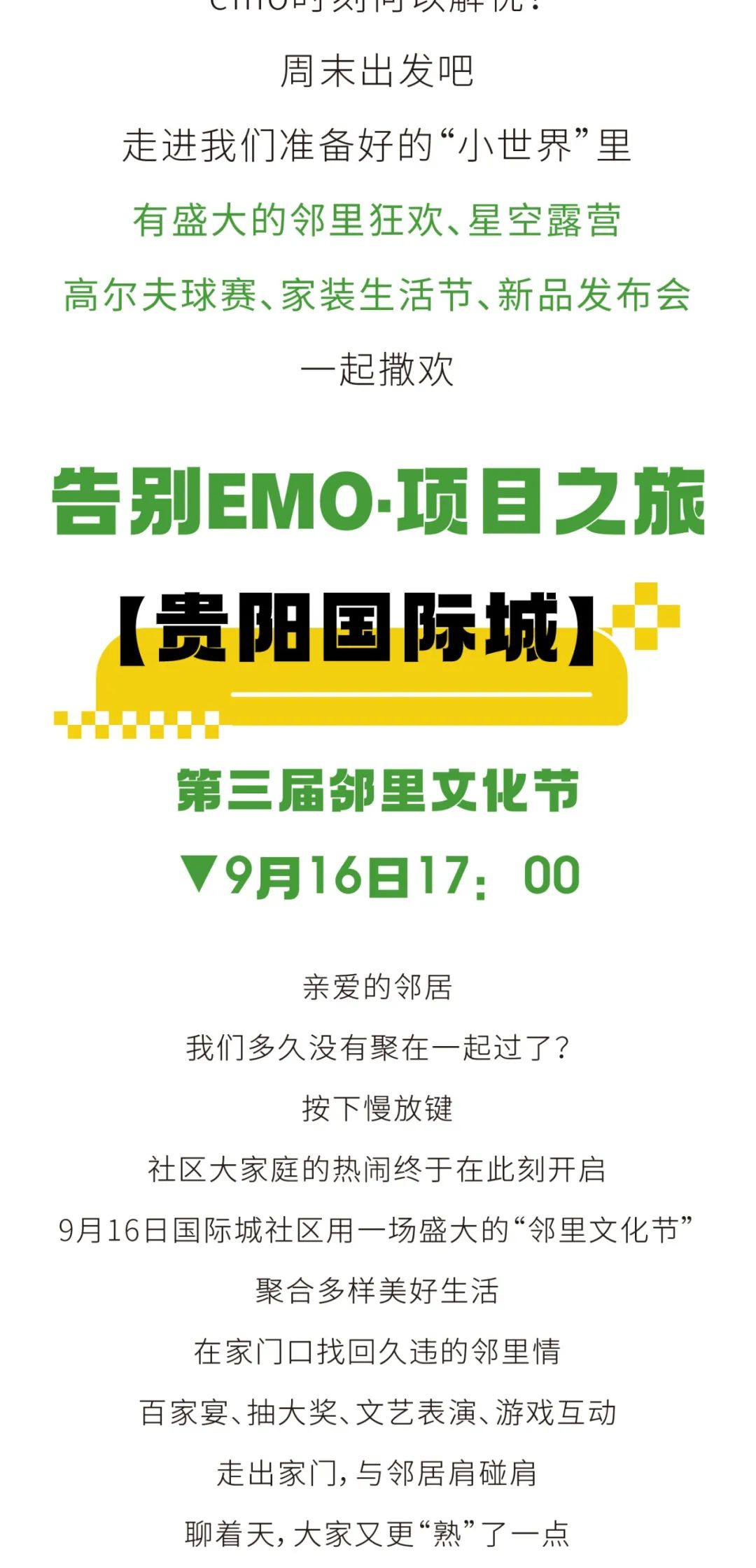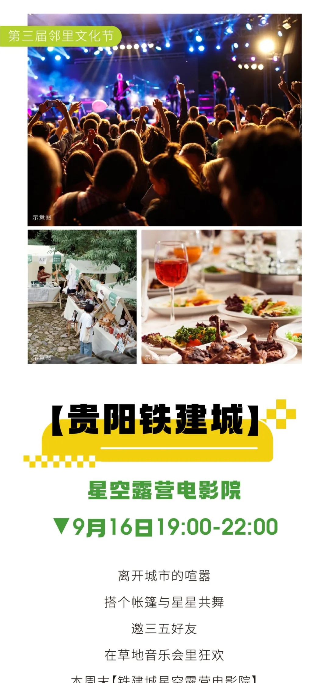 9月15日,中国铁建地产贵州公司发布周末活动预告,邻里文化节、星空露营电影院、高尔夫邀请赛等精彩活动齐上阵,助力人们畅享更加丰富多彩、舒适愉悦的日常生活。