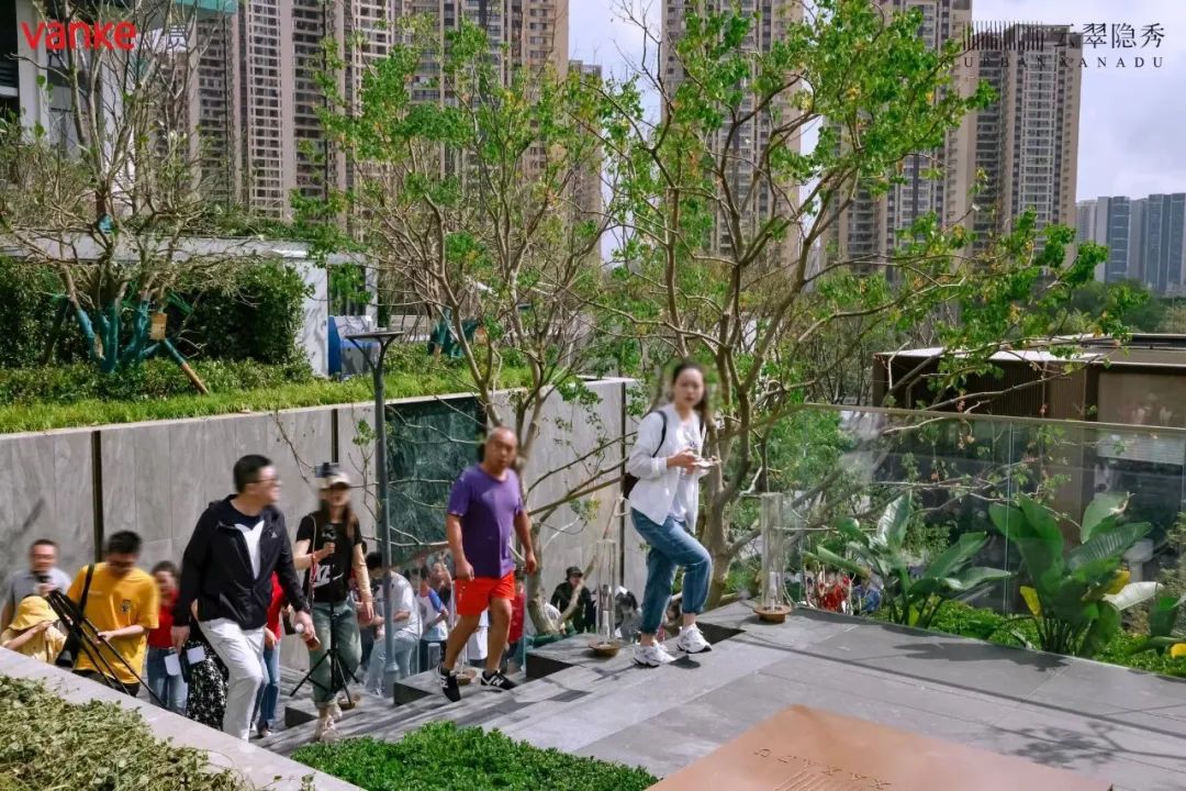 活动结束后,大家自由漫步实景示范区中,感受着人、建筑与自然之间的默契,感受万科·云翠隐秀的便捷活力美好场景。
