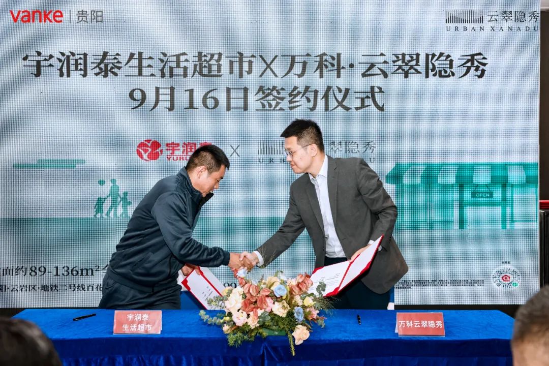 9月16日,万科·云翠隐秀实景示范单位开放,数百位贵阳万科业主朋友、意向客户以及媒体朋友们,共同见证了万科·云翠隐秀与贵州省植物园、贵阳市公交公司、勇惠便利店以及宇润泰生活超市的签约合作仪式,共鉴万科·云翠隐秀美好生活的“提前兑现”。