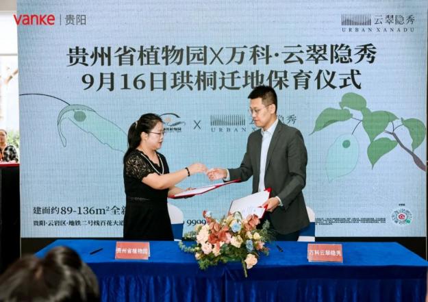 为打造一个都市自然人文大境,万科·云翠隐秀携手贵州省植物园,引入贵州特有的国家一级保护植物“珙桐”入园,结合流水、花境、绿植等元素,营造社区灵秀、惬意的景观感受,提升项目景观的故事性,同时也增加自然对孩子教育性。活动现场万科·云翠隐秀与贵州省植物园举行签约仪式,为未来人居进阶植入更多的绿意和价值。