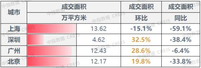 (一线城市成交面积同环比情况)