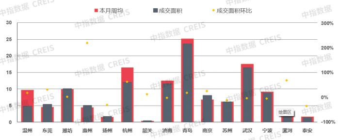 (二三线重点城市成交面积环比涨跌幅)