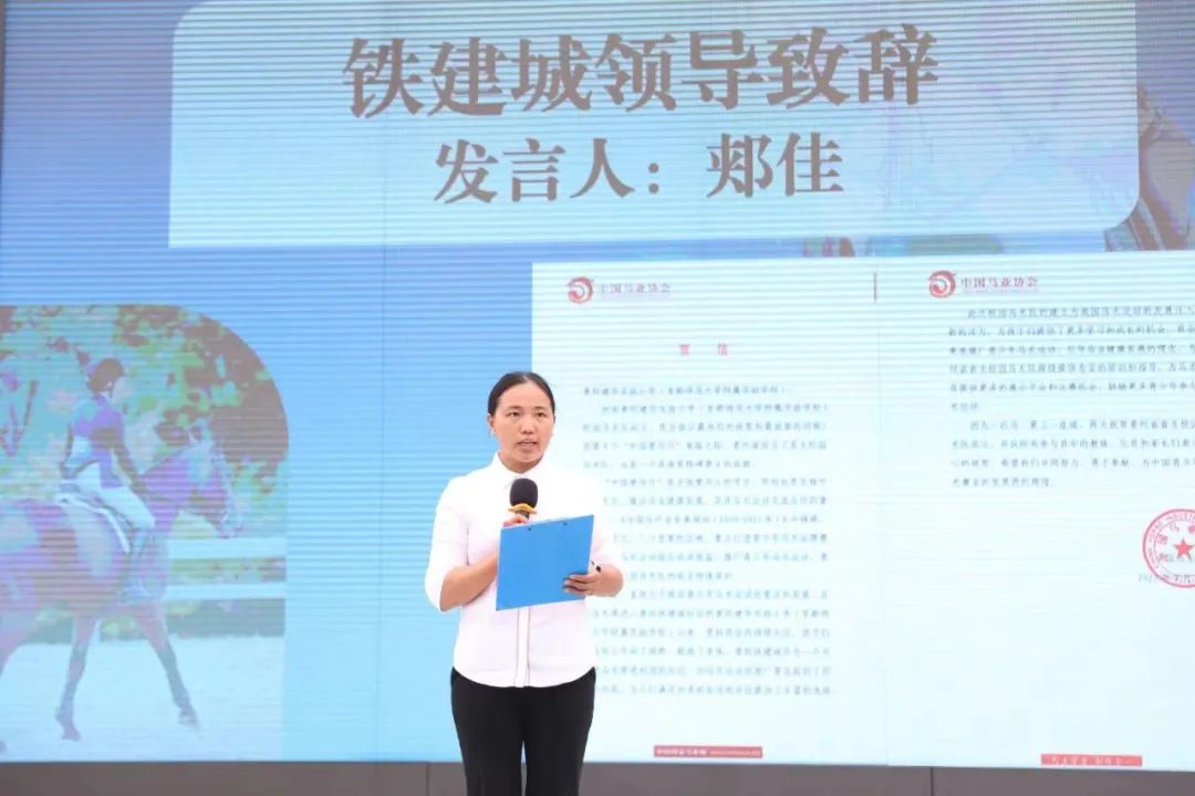 随后,社区运营中心副总经理郏佳代表铁建城发言,她表示,随着公立学校内首支校园马术队的建立,这向社区带来了一个全新的教育资源和发展机会。校园马术队的建立,离不开学校和家长的支持,期待他们在未来的表现!