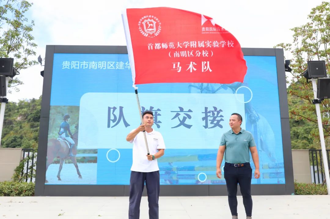 最后,马术队队旗正式交接,标志着贵州首支校园马术队正式成立。