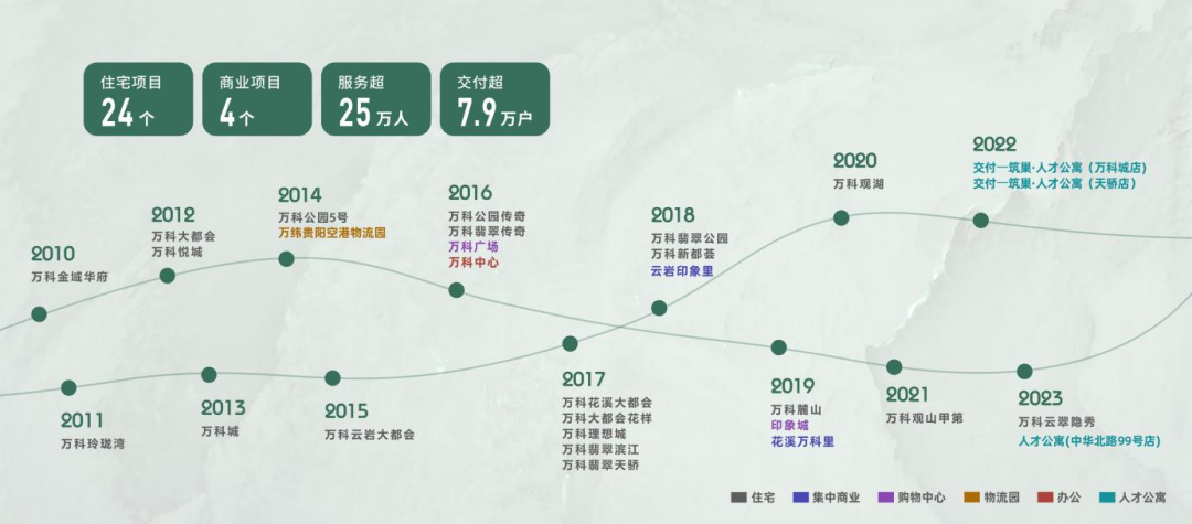 2010年,万科经过长期调研、分析之后,首入贵阳。13年时间,万科于贵阳先后开发万科·悦城、万科城、万科·新都荟、万科·麓山等24盘品质住宅。13年,贵阳万科实现了交付品质与满意度的持续提升,成为贵州省第一个做到“交付即交证”的开发商,多个项目更成为省市级别观摩工地。截止2023年8月,贵阳万科住宅项目均如期交付,累计交付套数达3796套,做到100%交房即交证。一站式暖心交付体验,让交付满意度达到97.13,贵阳万科以实力兑现着美好生活。