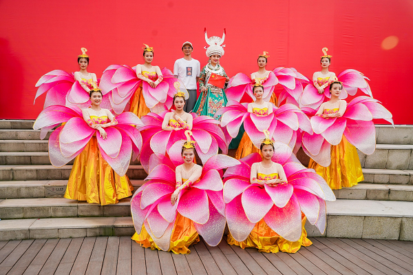进入歌曲高潮部分,在场的市民纷纷被感染,瞬间引爆全场激情,万人挥舞国旗,高声同唱《我和我的祖国》,饮马湖成为一片红色的海洋。